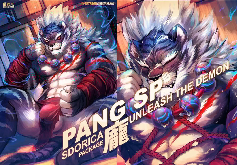 story "Pang SP: A murderous demon born out of Pang's traumatic past. But demons, too, can be defeated. Bound by the holy ropes from the Temple of the Sun, the demon finds himself unable to escape. As the magical ropes coil tighter and tighter around him, all he can do is in vain. Now bound and helpless, he's stripped and edged, bringing him closer and closer to release. And in the moment of blissful weakness, his release will be his defeat."